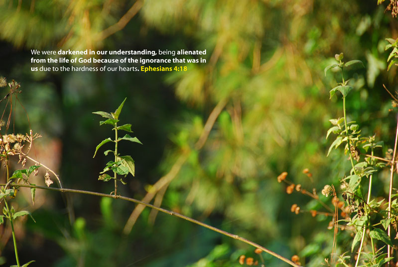 “They are darkened in their understanding, being alienated from the life of God because of the ignorance that is in them due to the hardness of their hearts.” Ephesians 4:18