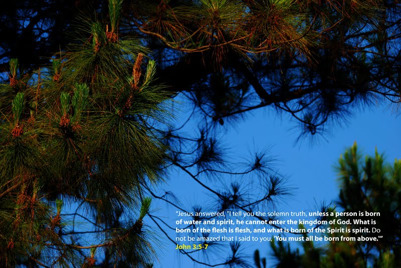 “Jesus answered, “I tell you the solemn truth, unless a person is born of water and spirit, he cannot enter the kingdom of God. What is born of the flesh is flesh, and what is born of the Spirit is spirit. Do not be amazed that I said to you, ‘You must all be born from above.’” John 3:5-7